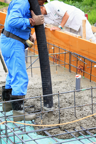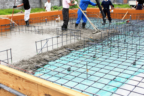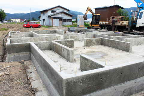 T様邸建築工事(湯沢市) 6月3日:基礎コンクリート打設(土間)