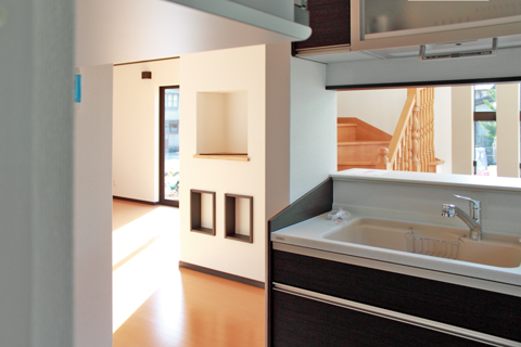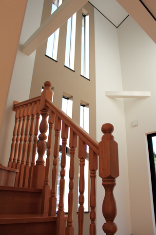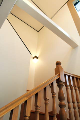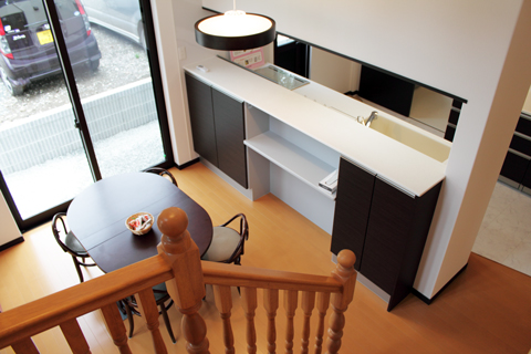 ダイニングに階段をつけて、いつも家族が顔を合わせられるようにしました。しかも、階段がリビングとの目隠しになっているので、急なお客様でも慌てなくて大丈夫。